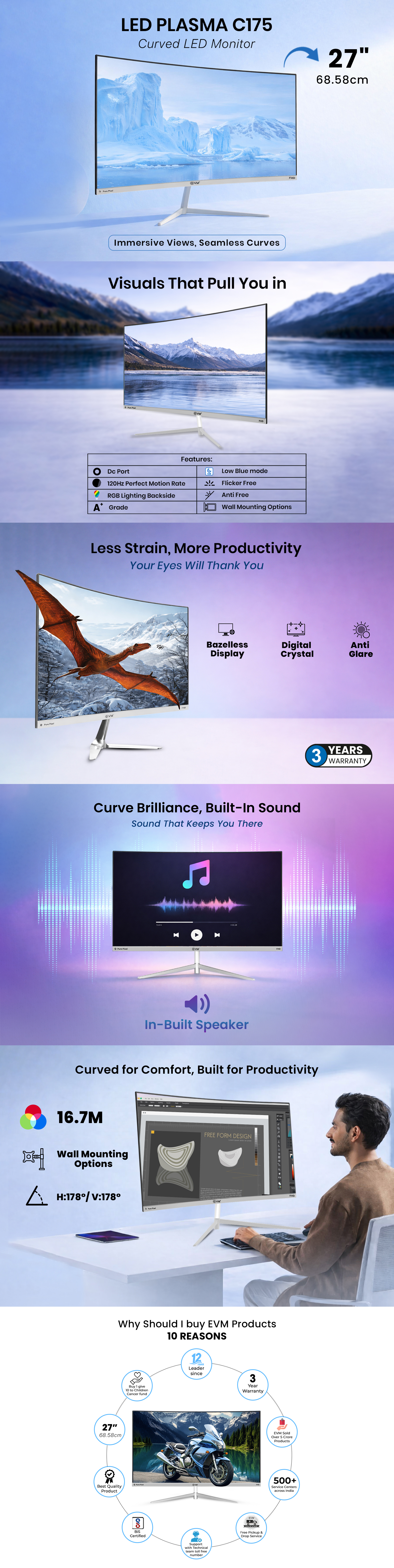 LED Plasma C175 27Inch Curve Monitor
